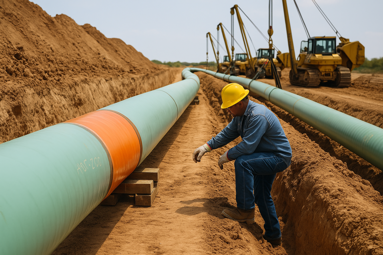 Construction support for natural gas, petroleum, and alternative energy infrastructure, including pipeline installation and coordination within active facilities.